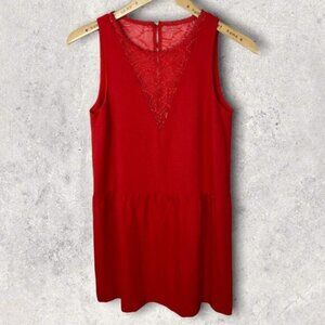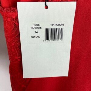 Sézane ROne Sizealie Dress in Coral Red and Women's Size 34 French (= Size 2). Flattering shift silhouette. Sleeveless. Crew neckline. Back lace detail. Button clOne Sizeure. Lined. Acetate, viscOne Sizee, polyamide and spandex. Dry clean. Brand new with tags! No flaws.