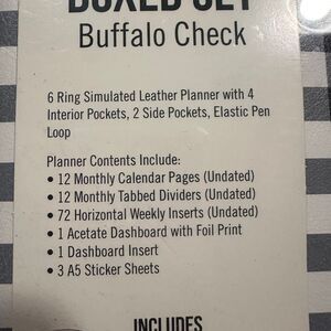 carpe diem buffalo plaid A5 boxed planner set undated hello today NEW Undated Planner pages Side cover pocket Gold 6-ring binder mechanism Interior pockets Side pocket Elastic pen loop Metal charm Brand new in box (box may show shelf wear)