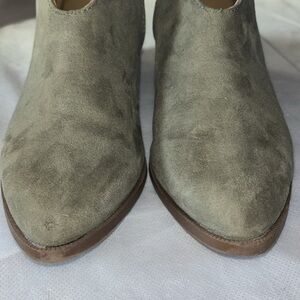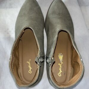 Boots Booties Neutral Gray Tan Soft Faux Suede Slip On Shoes Side Zip Size 8