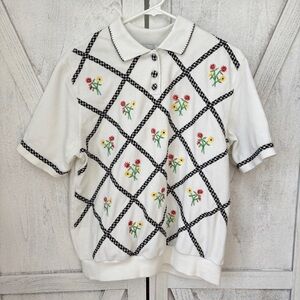 Alfred Dunner Vintage Floral Embroidered Top Size Medium Cottagecore Fairycore