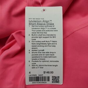 Lululemon Align Dress Size 4 Pink 3" Liner Nulu NWT