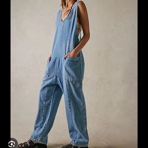 Stylish blue denim jumpsuit with pockets. Perfect for casual wear. These have adjustable straps.