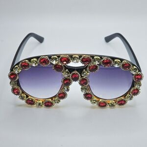 Transparent Pink beveled heart sunglasses by Betsy Johnson.