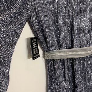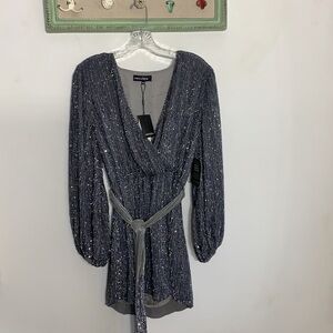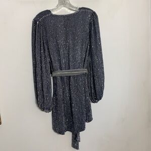 NWT The Julie Dress Retrofête Gunmetal Grey Sequin Belted Mini Dress Long sleeve