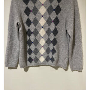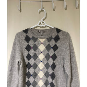 NWOT 2 PLY 100% Cashmere By Charter Club Argyle Cashmere Crew Neck Long Sleeve Lightly Fuzzy Women Sweater Size XL