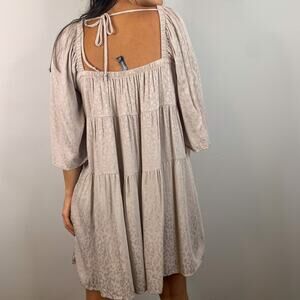 LunaChix Light Tan Ruffle Flowy Shift Dress. Square neck. Tie behind the neck. Flowy half sleeves. PC