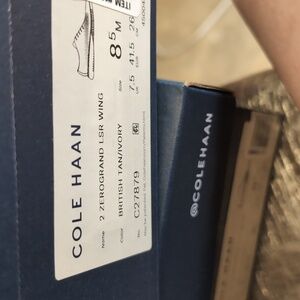 Cole Haan Men's 2 Zerogrand Lsr Wing brand new with box size 8.5 EU 41.5 british tan/ivory Integrated Motion Outsole, Flex Welt, and laser-perforated leather support unrestricted movement and flexibility. Dynamic energy foam is designed to comfort and propel each part of the foot, and rivals top-of-the-line running shoes. Zonal tongue and Achilles padding generate ready-to-wear comfort from day one. Anatomically contoured energy foam footbed cushions as it supports weight distribution and moisture control. Comfort Fitsock embraces and cradles the foot from the first instant. Full rubber outsole provides mobility, durability, and reliable grip for any terrain. GRANDFØAM™ technology. Due to the closed-lace design of this shoe, men with a high instep or a slightly fuller width foot may consider sizing up 1/2 size. Cole Haan leather products support responsible manufacturing via the Leather Working Group.