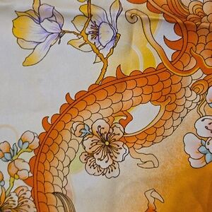 New Shanghai Story 100% Silk Orange Floral Dragon Print Scarf