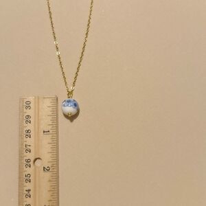 This elegant gold necklace features a stunning blue and white pendant, perfect for adding a touch of sophistication to any outfit. Ideal for both casual and formal occasions.