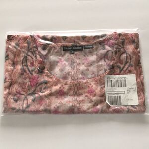 Features: allover print, scoop neckline, curved hem, seam detail provides shape