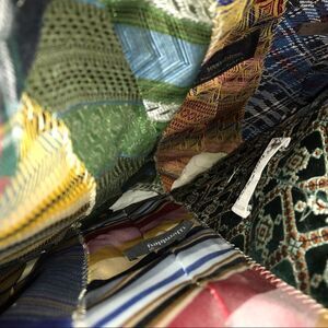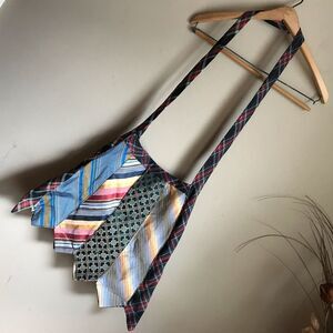 I personally made this bag. Collected these men’s ties over several years, and then sewed them altogether!