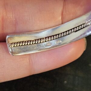 Elegant silver bracelet featuring a striking black heart design. Perfect for adding a touch of sophistication to any outfit. Approximately 7" total circumference..Stamped Sterling..Slightly adjustable.