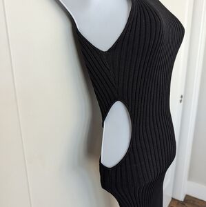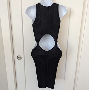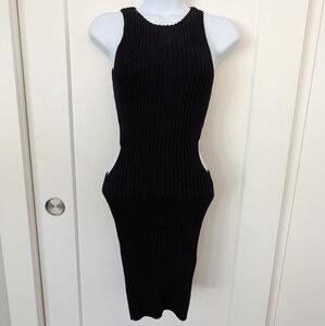 Sexy black mini dress with ribbed texture. Sleeveless design with cutouts. Very stretchy and form fitting. Only worn once. In excellent condition.