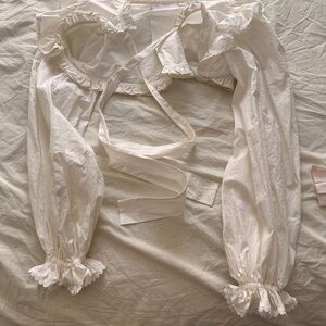 Charming plaid dress with puff sleeves. Features a mix of blue and white colors.