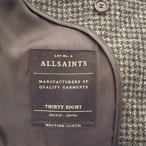 All Saints Dark Gray Checkered Pea Coat