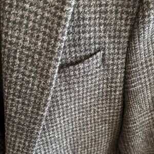 Stylish dark gray checkered pea coat. Ideal for a refined look.