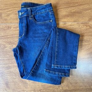 Guess Denim Blue Zipper Closure faux ostrich leather trim Keychain Coins Wallet