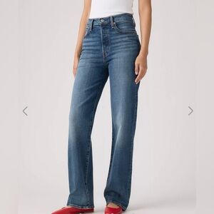 Elevate your style with these Ribcage Straight jeans in a classic blue. Perfect for any occasion, these jeans offer both comfort and a flattering fit. Fits a true size 28.