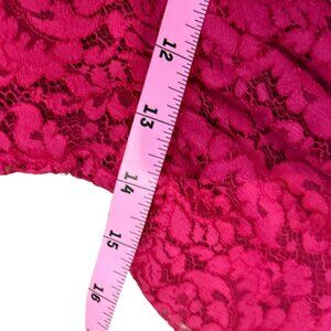 Fuchsia lace dress with skirt by Alice+Olivia. This brightly colored dress is perfect for summer ceremonies. The structure of the skirt, fluffy and outlined by the lace flounces make this dress ironic and fun, hence it is also suitable for daytime ceremonies.