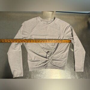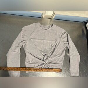 EUC - top is in great shape with some light pilling. USM - best guess is a US6 (loose fit). Heathered Mod Stargaze Wear this relaxed-fitting crew for coverage and warmth on your commute or after workout to keep your temperature in check. Modal French Terry is naturally soft and breathable features Designed for: On the Move Length: High-hip length Cropped length: Cropped length pairs perfectly with high-rise bottoms G1101