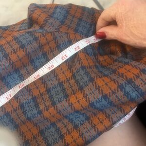Vintage Lady Devon Stylish plaid button-up jacket featuring blue and orange colors. Perfect for a chic, casual look. Best fit large/xl