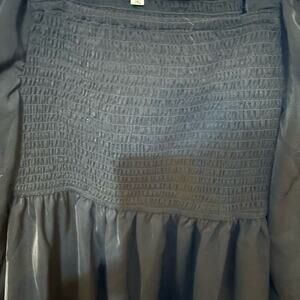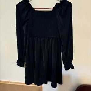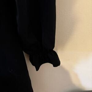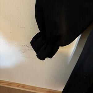 Adorable black dress for tweens, size 10. Features puffy sleeves and ruching on the chest, perfect for dressy occasions with a stylish, elegant touch.