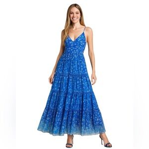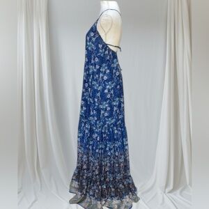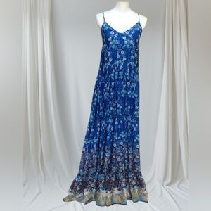 MISA Los Angeles Shimmering Blue Chiffon Ombré Cottage Core Kali Maxi Dress S