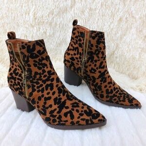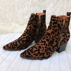 * Mata Leopard Print Western Style Slip On Ankle Bootie With 2 1/2" Block Heel