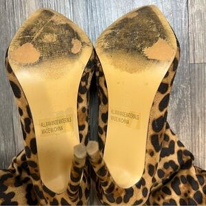 F21 Animal Print Brown Tan Suede High Heel Pointed Toe Stiletto Boots Size 8.5
