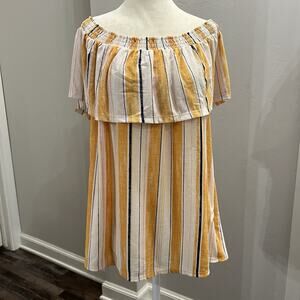 Lauren Conrad Off The Shoulder Gauzy Top Shirt Size L Yellow Striped Festival