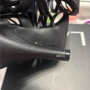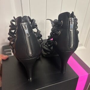 Sophisticated black cage strap heels by Lane Bryant. Perfect for a stylish look.