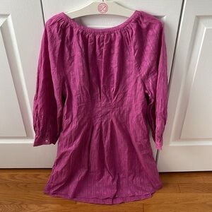 Chic long sleeve dress by Anthropologie. Vibrant pink color with textured fabric. Button-down front. Relaxed fit, also adorable tied at the waist with a belt. Great condition