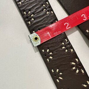AEROPOSTALE Stitched Brown Leather Belt - Silver Ring Buckle - Size L - 43" Long