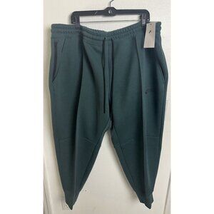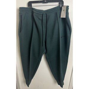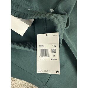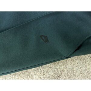 These Nike Women's Sportswear Tech Fleece Jogger Pants in size 3X feature a solid deep jungle green color with a Nike logo. The pants have a drawstring closure, tapered leg style, and zip pockets. Made of a polyester blend fabric, they offer comfort and stretch for activities like running, hiking, and yoga. Perfect for casual wear or activewear, these jogger pants are a stylish addition to your wardrobe.