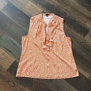 Ann Taylor Tie Neck With Ruffles Orange Sleeveless Printed Blouse Size XL