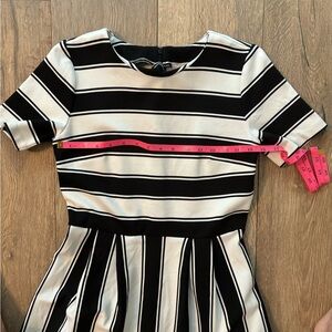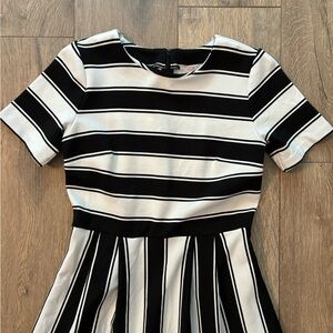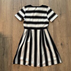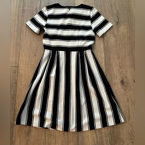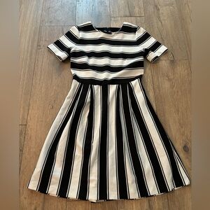 LOFT Striped Flare Black and White Dress 4P Petite Office Fit and Flare