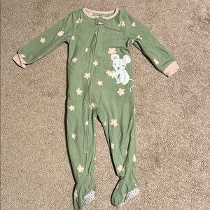 Adorable green one piece with a cute mouse print, perfect for your little one. Soft and comfortable for all-day wear. Gently used. Smoke free/pet free home.