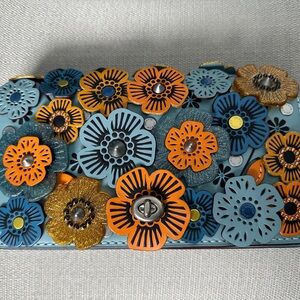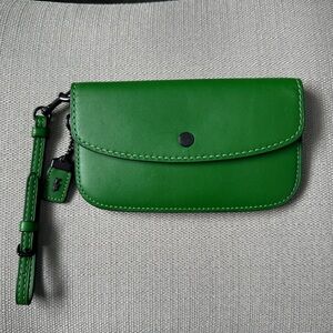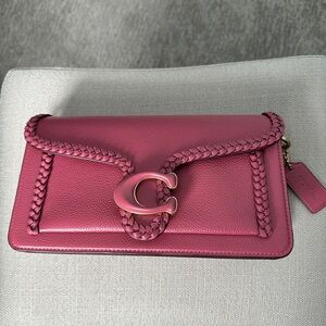 Willow saddle in petunia and brass. Includes the matching leather crossbody strap in petunia as well as the petunia and pistachio web strap. Carried twice, no damage, from a non smoking home.