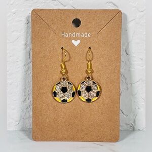 Show your love for soccer with these stylish hand crafted gold tone bling earrings. Perfect for any sports enthusiast.