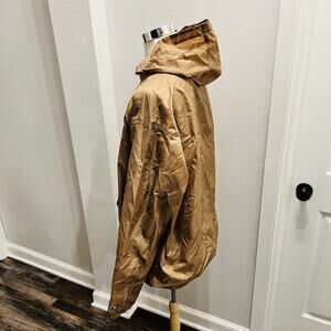 The Champion Brown Quarter/Half Zip Windbreaker/Rain Jacket in 2XL is a versatile and stylish option for men who enjoy walking, running, or jogging. Made of durable nylon material with an embroidered logo, this tan-colored jacket features a drawstring hem for a customizable fit. The half-zip design and windbreaker style make it easy to layer over other clothing for added warmth during outdoor activities. Champion is a trusted brand known for quality athleticwear, ensuring both functionality and style in this jacket.