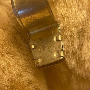 Retired Charming plush bear by Henri Bendel. Features a stylish brown outfit with gold details. Linda Novick All-Stuffed-Up Designer Bears Jointed Whistle with Vest Bowtie and Wrist-cuff! the whistle has some visible tarnishing it looks like as shown in pictures but other than that it’s in great shape . It’s 11 in wide and 16 inches high and comes with stand. Tag is still attached except the tag with the number is missing. if you have any other questions please feel free to ask!