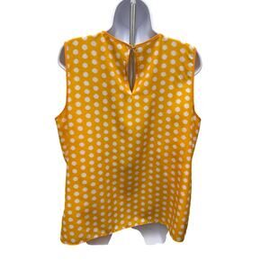 Michael Kors Womens SZ L Boxy Yellow Floaty Blouse Top Polka Dot pleated white