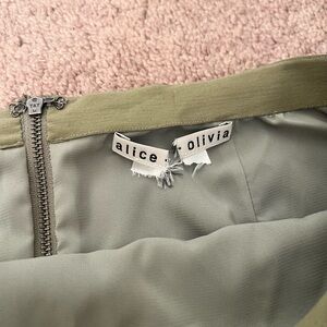 Elegant sage green mini skirt. Perfect for stylish outings. Crafted by Alice + Olivia. NWT. No stains or flaws except for the tag inside the skirt.