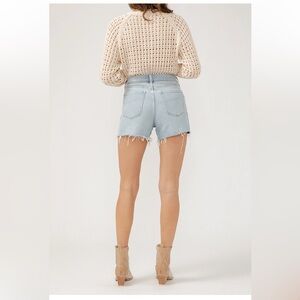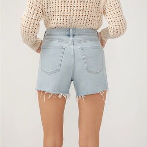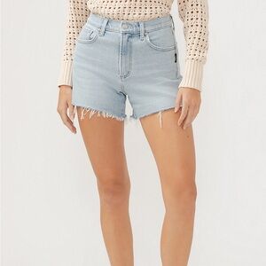 Stylish Silver Jeans high rise light blue shorts. Frayed hem. Perfect for casual wear. 4 1/2” inseam. Size 36 (like a 16). New with tags, originally $54.00.