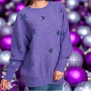 PEACH LOVE CALIFORNIA Floral print metallic silver detail sweater S M L