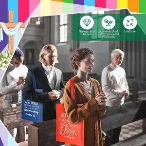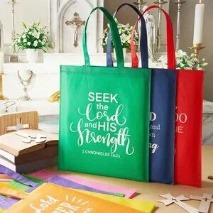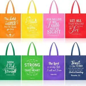 Features: This set includes 8 vibrant non-woven tote bags, each printed with a different inspiring Bible verse. The sturdy stitching and reinforced handles make them perfect for daily use—whether shopping, heading to church, or traveling. The bright colors and meaningful messages add a cheerful touch to any day.