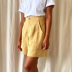Everyone needs a great pair of shorts to get them through the summer and Eve Gravels Clarence Shorts are the perfect pair! Made out of a beautiful viscose-linen blend, these high-waisted shorts have subtle front pleats and a loose, blouse-y fit. Pair them with a blouse or tee and youre ready for either work or play!