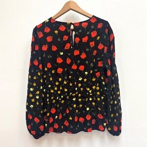Banana Republic Dark Floral Keyhole Peplum Top Boho Rose Petal Black Red Size XL