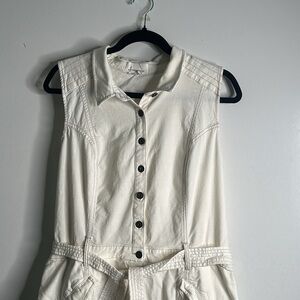 By Anthropology RYanne white utility jumpsuit wide leg large/14 button pockets