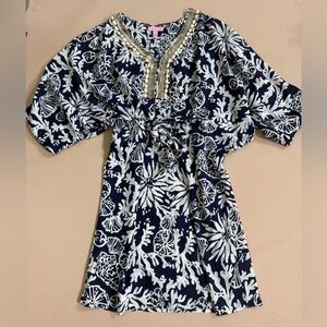 Wide leg crop, pockets and attached tie in front and elastic on back.